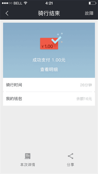 到达你想去的目的地后,将车停在政府规定的白线停车区域内,手动关锁就会自动结算计费