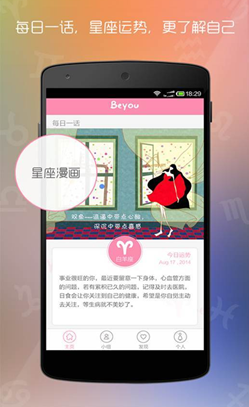 Beyou鏄熷骇鏄竴娆句笓娉ㄤ簬鏄熷骇瑙h鐨勬墜鏈哄簲鐢ㄨ蒋浠讹紝鐢变笓涓氱殑鏄熷笀涓哄箍澶ф槦搴х埍濂借呭惧姏鎵撻狅紝鐢ㄦ埛鍙互閫氳繃鏈蒋浠舵煡璇㈣嚜宸辨劅鍏磋叮鐨勬槦搴ц繍鍔裤佹槦搴ч厤瀵癸紝浜嗚В姣忎竴涓槦搴х殑鎬ф牸鐗圭偣锛屽悓鏃惰蒋浠跺疄鏃舵彁渚涙柊銆佺儹闂ㄧ殑鏄熷骇璧勬簮锛屾杩庝笅杞戒娇鐢ㄣ