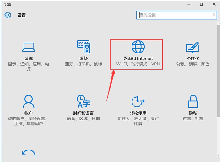 2銆佸湪璁剧疆绐楀彛涓夋嫨绗笁椤癸細缃戠粶鍜孖nternet