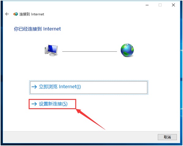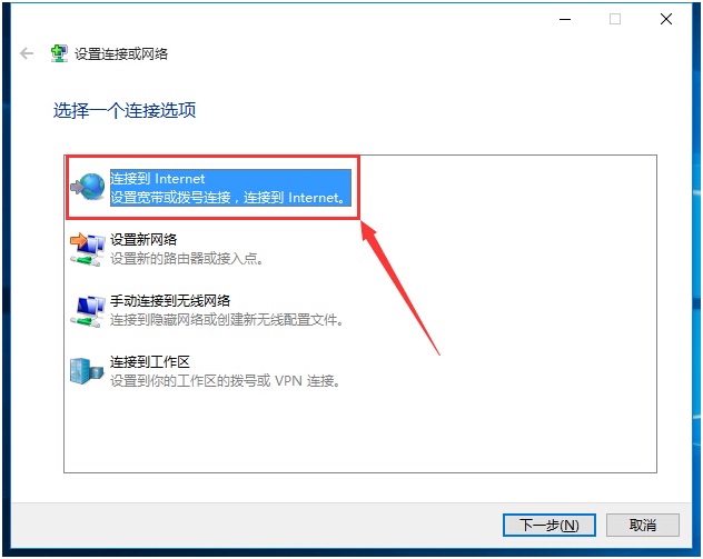 4銆佸湪“璁剧疆杩炴帴鎴栫綉缁”绐楀彛涓夋嫨“杩炴帴鍒癐nternet”,鐐瑰嚮“涓嬩竴姝”锛