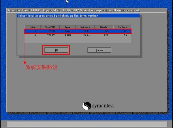 6.在下一步中,选择系统安装目录,单击“ok”按钮,如图: