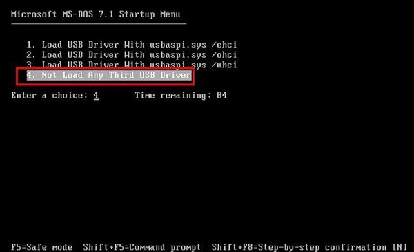在接下来的步骤中选择4,回车即可,如图: