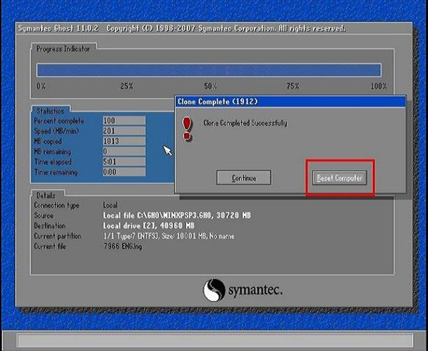 10.安装完后,弹出提示,单击“reset continue”,电脑会自动重启。
