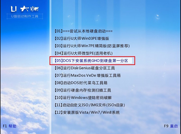 使用U大师U盘启动盘制作工具制作的启动盘有两种Ghost方式安装系统。