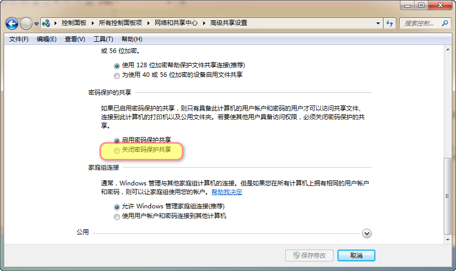 另外还可能是域问题。打开win7的网络共享中心,关闭密码保护共享就好了。需要注销,或者你直接选择你的网络位置为公用,就能免去输入密码的麻烦事。公用的默认的就是关闭密码保护共享。
