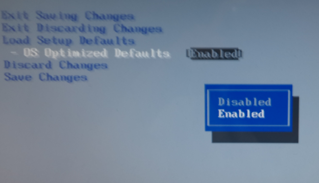 设置完成之后,找到exit里面 os optimized deaults 设置成enanble。