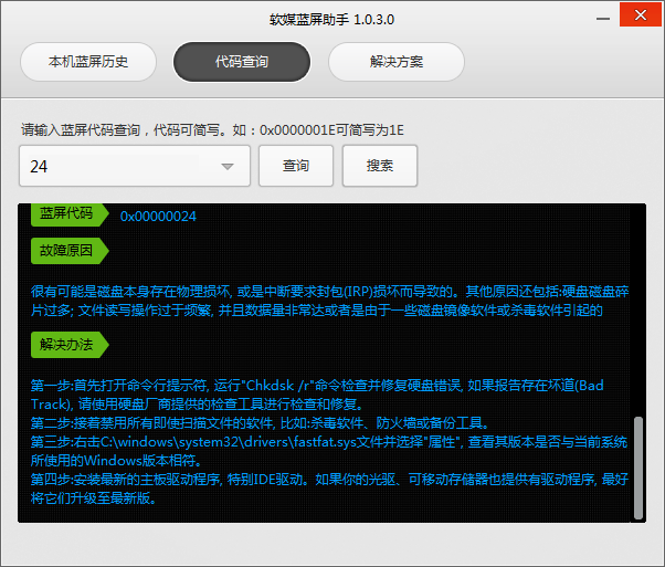 从代码分析中可以看出,这种错误,一般都是因为硬盘问题,有可能是硬盘坏道,或者硬盘碎片引起。