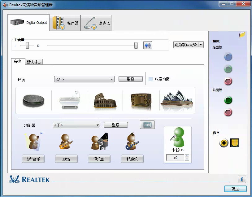 如果正确的设置默认播放设备应该是扬声器才对,如果是digtal output就会没有声音,碰到这种不对的情况,我们就需要调整默认设备。
