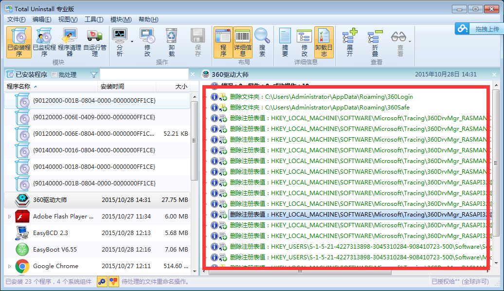 选择之后,软件会自动分析软件安装时所创建的所有文件包括注册表: