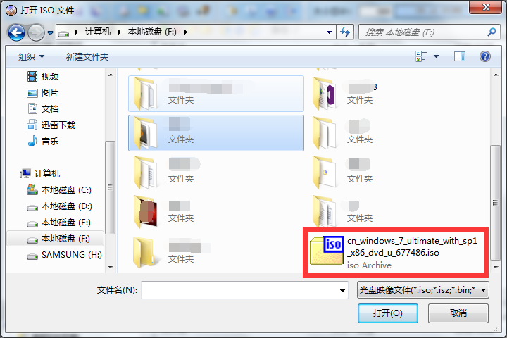 选择文件,打开,选中我们的系统文件,小编以window7 原本为例: