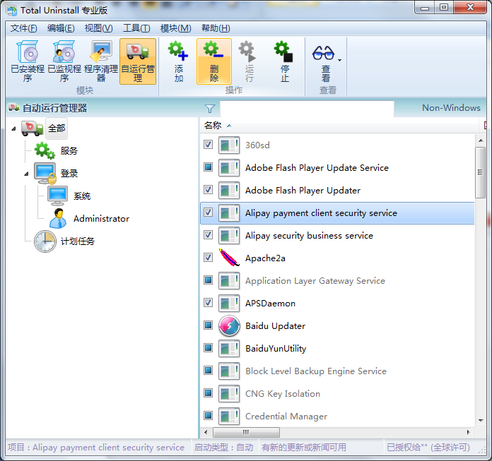 2.使用第三方软件进行优化,比如360等等,这里小编以total uninstall为例:
