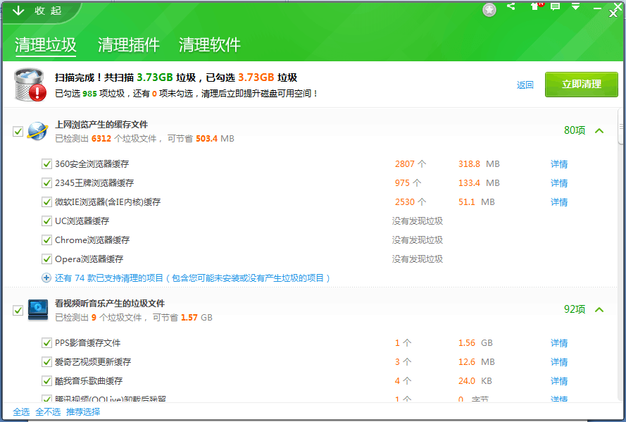 使用辅助软件,如360安全卫士或金山卫士又或是一些小软件帮助我们去删除这些系统垃圾。