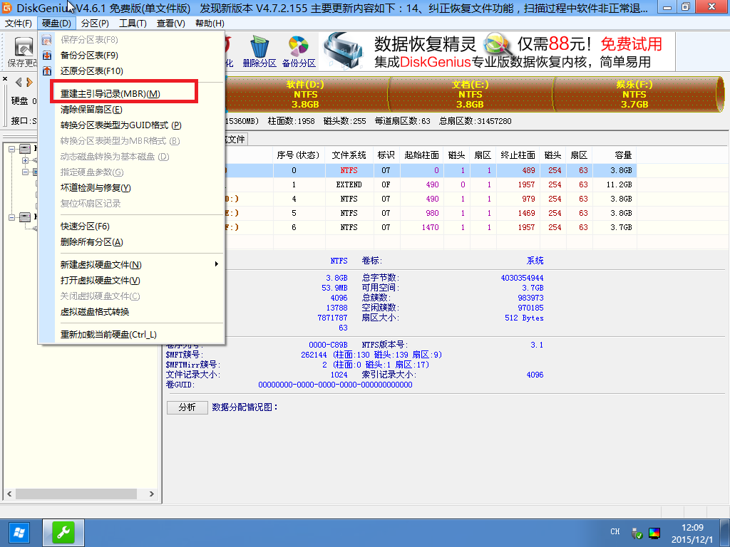 后,为了避免出现问题导致系统无法启动,建议重建mbr和修复系统引导!