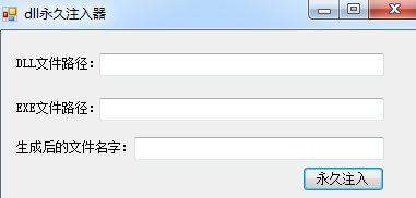 DLL永久注入器是一款操作简单的编程工具,用户只需要输入DLL文件路径、EXE文件路径和生成后的文件名字,然后点击永久注入按钮即可完成,轻松实现软件的自定义扩展功能。软件界面十分小巧,功能选项非常直观,使用方便。