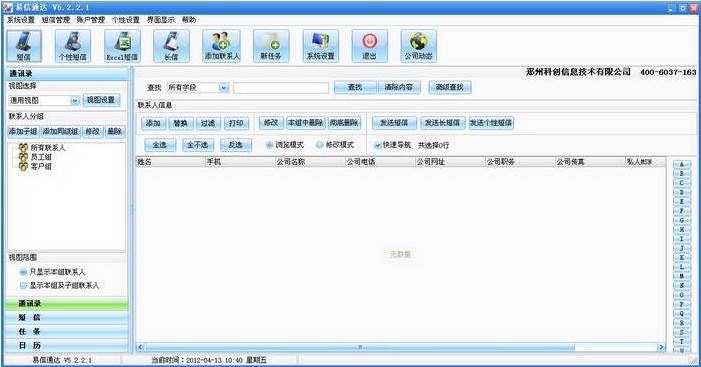 易信通达短信群发平台是一款互联网上专门用于短信群发的工具,随着互联网移动产品的不断发展,手机短信已经很少有人会使用了。基本只是用作接受一些短信消息,如果您是利用短信进行产品的推广是非常适合使用易信通达短信群发平台的。