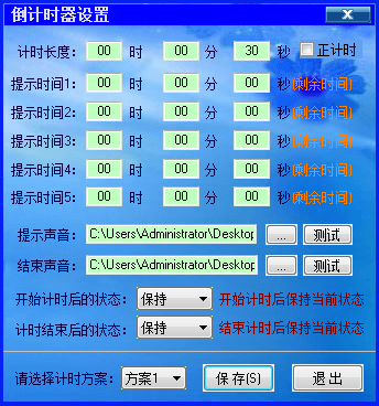 4、自定义设置相关配置参数,例如计时长度、提示时间、提示声音、提示方案等等。