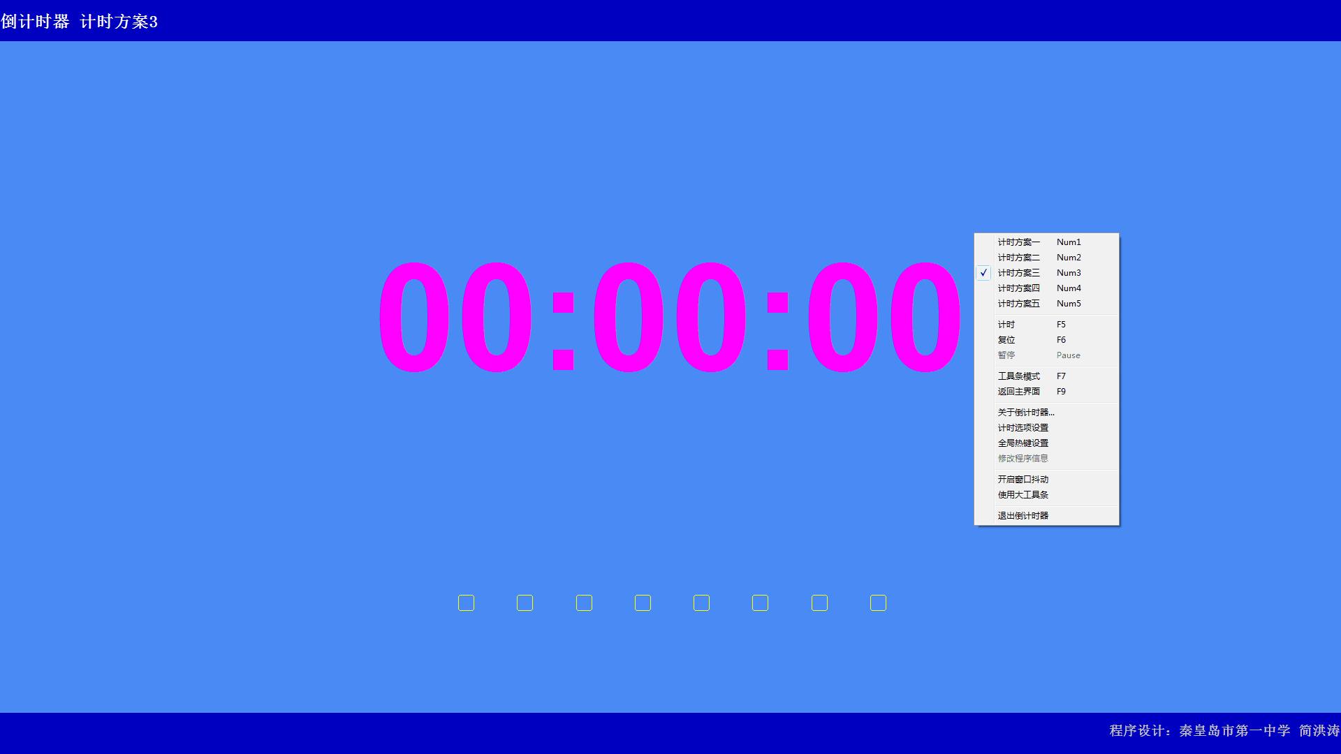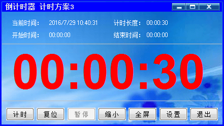 倒计时器是一款专业的、功能实用的计时软件,适用于广大中小型企业、政府、学校等企事业机构进行知识竞赛、演讲比赛的时候使用,界面简洁,支持全屏模式,包括计时、复位、缩小、暂停等多个功能按钮。