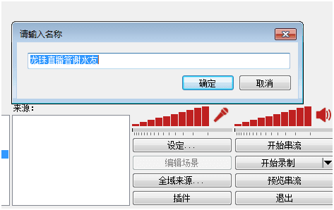 2、打开OBS,在“来源”中添加“龙珠直播答谢水友”